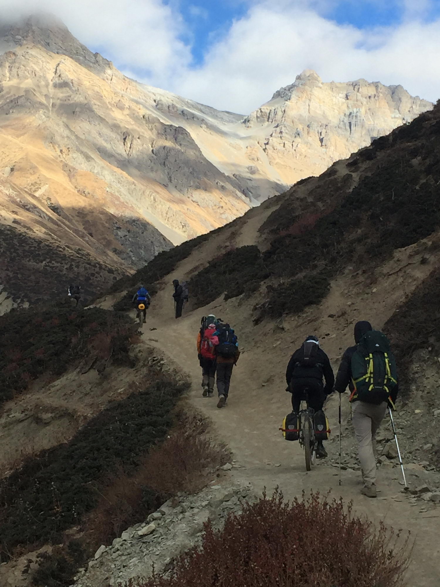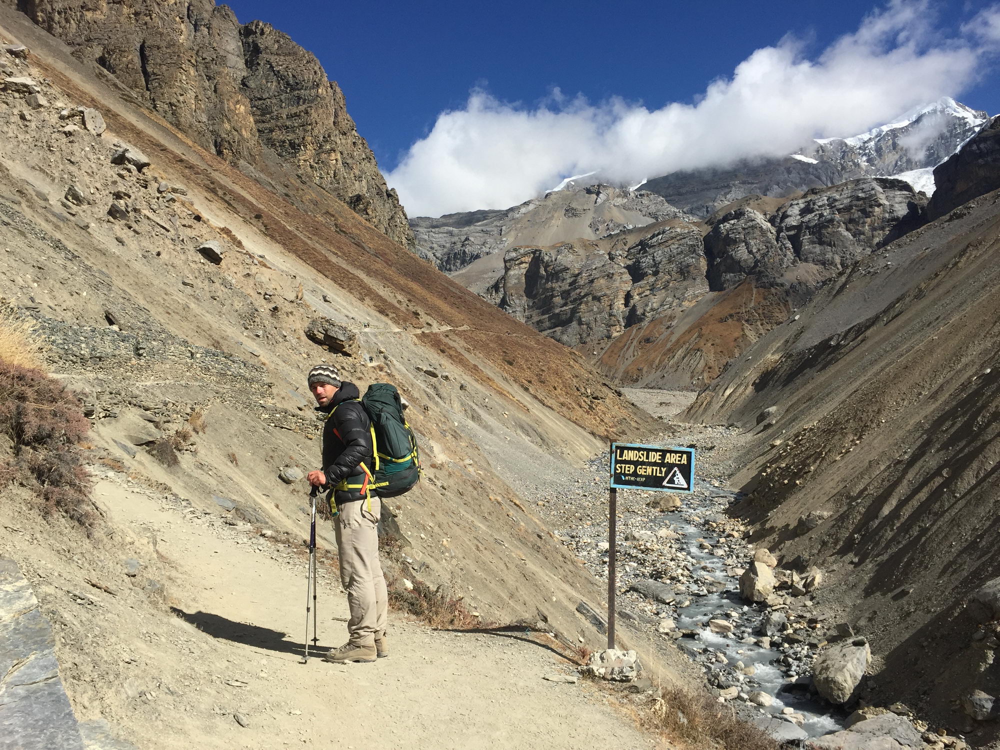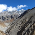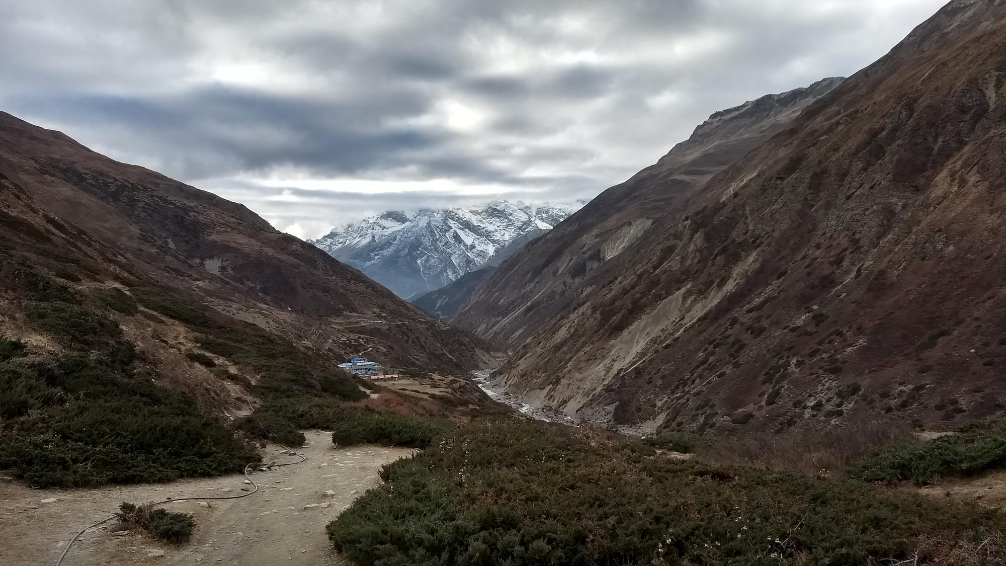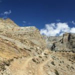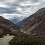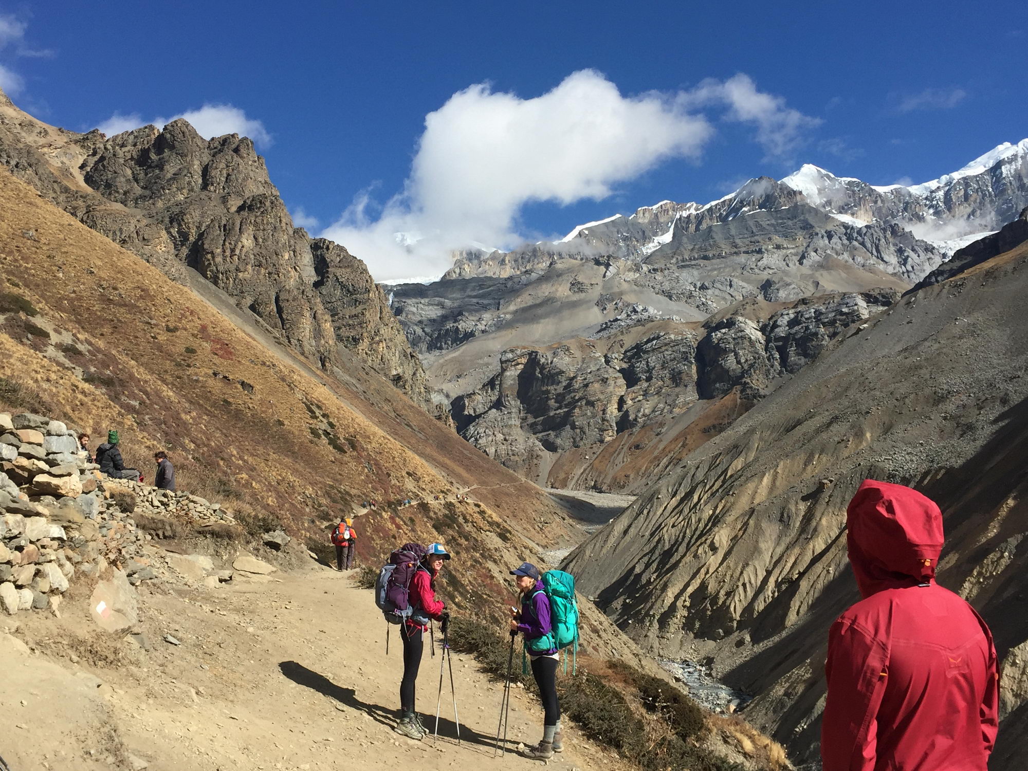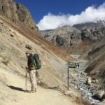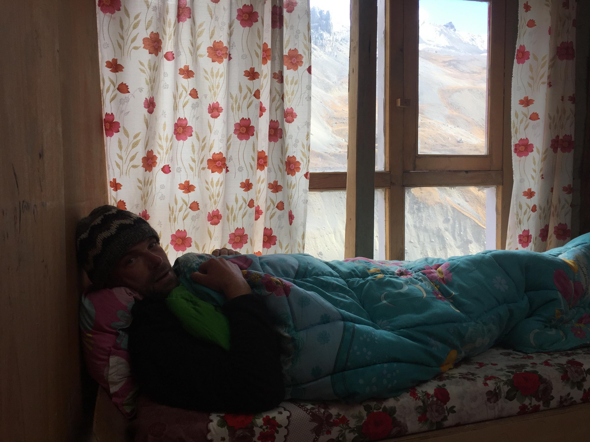 Eindelijk gaat de wekker en starten we ons zoveelste ochtendritueel. Om 7 uur zijn we vertrokken. We zitten hier wel op 4020 m, maar ik moet om de 5 stappen stoppen om uit te blazen en om hoestbuien te verwerken wat de voorbije dagen het geval niet was. Dit betekent niet veel goeds. De trend voor de rest van de etappe is gezet. Beetje bij beetje schieten we op, op een vrij vlakke route. Door bijna voortdurend te hyperventileren kan ik mij tot na de steilste klim voortsleuren in het zog van Fré, die mij op sleeptouw neemt. Gelukkig, want anders ging ik mij op mijn gat zetten en zou ik geen meter meer verzetten. Het wordt opnieuw minder steil en het laatste stuk leggen we tergend langzaam af. Er leek geen einde aan te komen. Plots duikt Thorung Phedi in de verte op. Je kan hier ‘beneden’ overnachten ofwel iets hoger. We besloten, op mijn aandringen, om de hoogst gelegen lodge te nemen zodat we morgen minder moeten klimmen. De New Top Hill hotel is een eenvoudige lodge met een gezellige diner en kleine, maar comfortabele kamers. We kiezen er nu toch voor om zo dicht mogelijk te slapen bij de diner, want het is hier vrij koud. De kamers buiten voelen een stuk frisser aan.