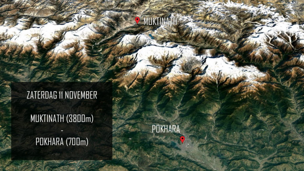 Normaal gezien zouden we van Muktinath naar Jomsom wandelen via een alternatieve trail, maar aangezien ik nog te ziek was om te wandelen, gaan we de bus nemen naar Jomsom. Daar kijken we dan wat de mogelijkheden zijn.