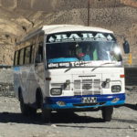 De bus zou rond 11.30 uur vertrekken, maar algauw werd het 12 uur en uiteindelijk waren alle locals present zodat om 12.30 uur de bus kon vertrekken. Na nog geen 5 minuten stopte de bus alweer aan een ander bushokje van de bus-company. Daar moesten er meer mensen opstappen dan er plaatsen waren. Maar bon, nog plaats zat in de middengang, dus proppen maar! Alle bagage moest mee op de bus en niet op het dak, terwijl er niks op het dak lag. De volgende stop was aan een bouwwerf. Hmmmmm, moeten al deze mensen nog op deze bus én al hun materiaal (tonnen, jerrycans, duffelbags,…)??? Yepyepyep! De busbegeleider en de bouwvakkers komen het eerst niet overeen en er stopt nog een bus die zich komt moeien. Na een eerste discussieronde komen ze niet tot een consensus, maar uiteindelijk beginnen ze het dak vol te laden en stappen er een aantal bouwvakkers op de andere bus op. Na een uur kunnen we opnieuw verder rijden. Nu zit de bus echt wel stampvol… Het is hier ondertussen serieus beginnen waaien en het stof stuift rond zodat het zicht bijna nihil is. Een raampje open zetten zit er dus ook niet in.