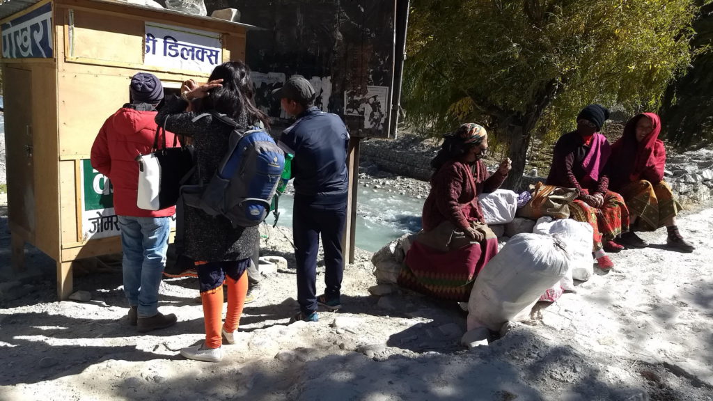 Aangezien het principe first comes first served geldt, gaan we rond 7.30 uur naar het busstation om ticketjes te kopen. Al snel komen er nog trekkers bij, die hetzelfde plan hebben om de bus te pakken. Rond 8.30 u zijn de ticketjes uitverkocht, maar nog geen bus te zien. Ondertussen zijn er nog trekkers bijgekomen, maar die moeten op zoek naar een jeep. Een jeep huren valt mee van prijs als je met zijn tienen bent, dan betaal je 500 rupees per persoon.