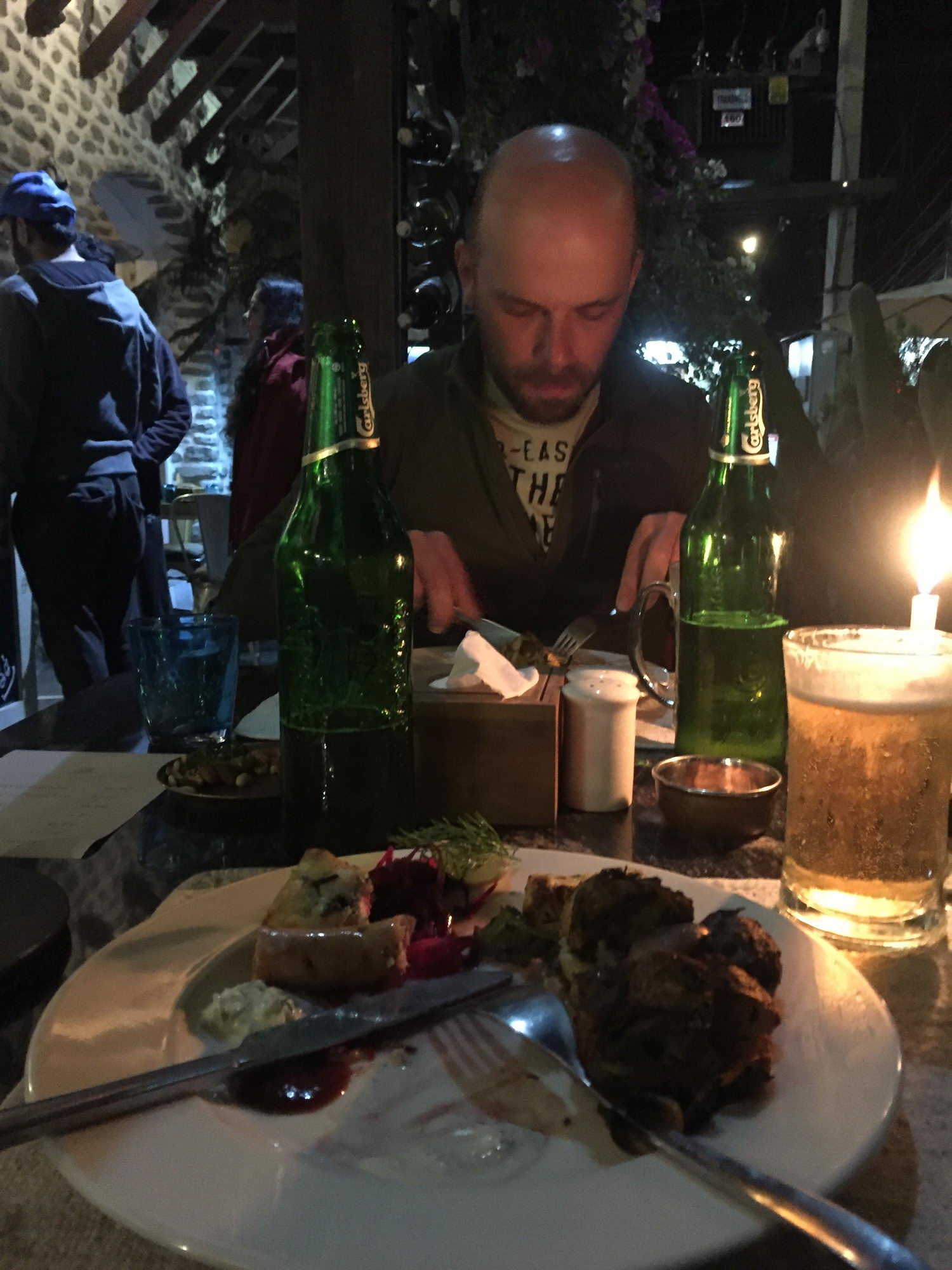 ’s Avonds gingen we uit eten in het restaurant van The Harbour. Een frisse pint en een mixed grill… MMMMMMM een zalig lekkere BBQ. Tijdens de trekking aten we zo goed als vegetarisch (behalve onze yakburger), dus een beetje vlees was echt welkom.