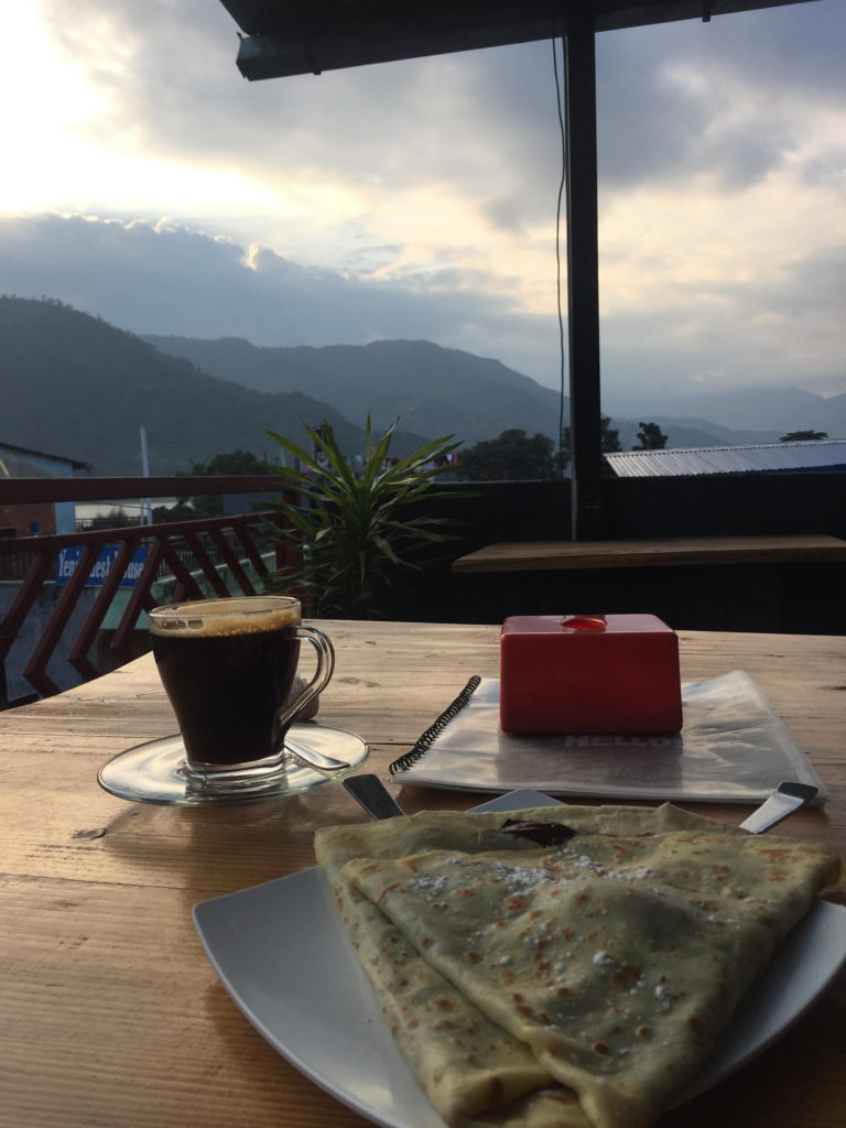Zalig ontwaken, douchen, ontbijten, onze achtergelaten bagage oppikken, kleren sorteren voor de wash service (100 rupees per kg) en onze kamer regelen voor de rest van ons verblijf hier in Pokhara.