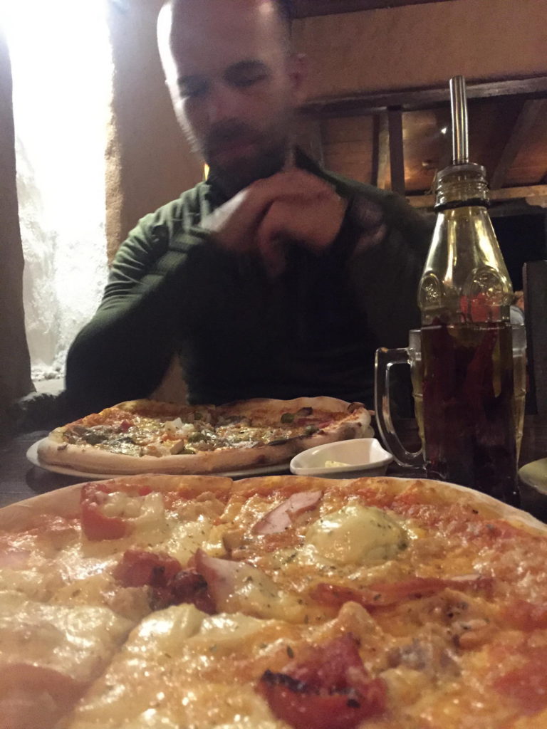 Aangezien het Fré zijn verjaardag is vandaag mocht hij kiezen waar we uit eten gingen… Pizzatime in Café Concerto. Weeral een dikke aanrader, want hier kregen we de beste pizza voorgeschoteld. Zelfs de Italianen kunnen hier niet aan tippen. Het is er ook heel gezellig zitten met in het midden een pizza oven, die dienst deed als haard.