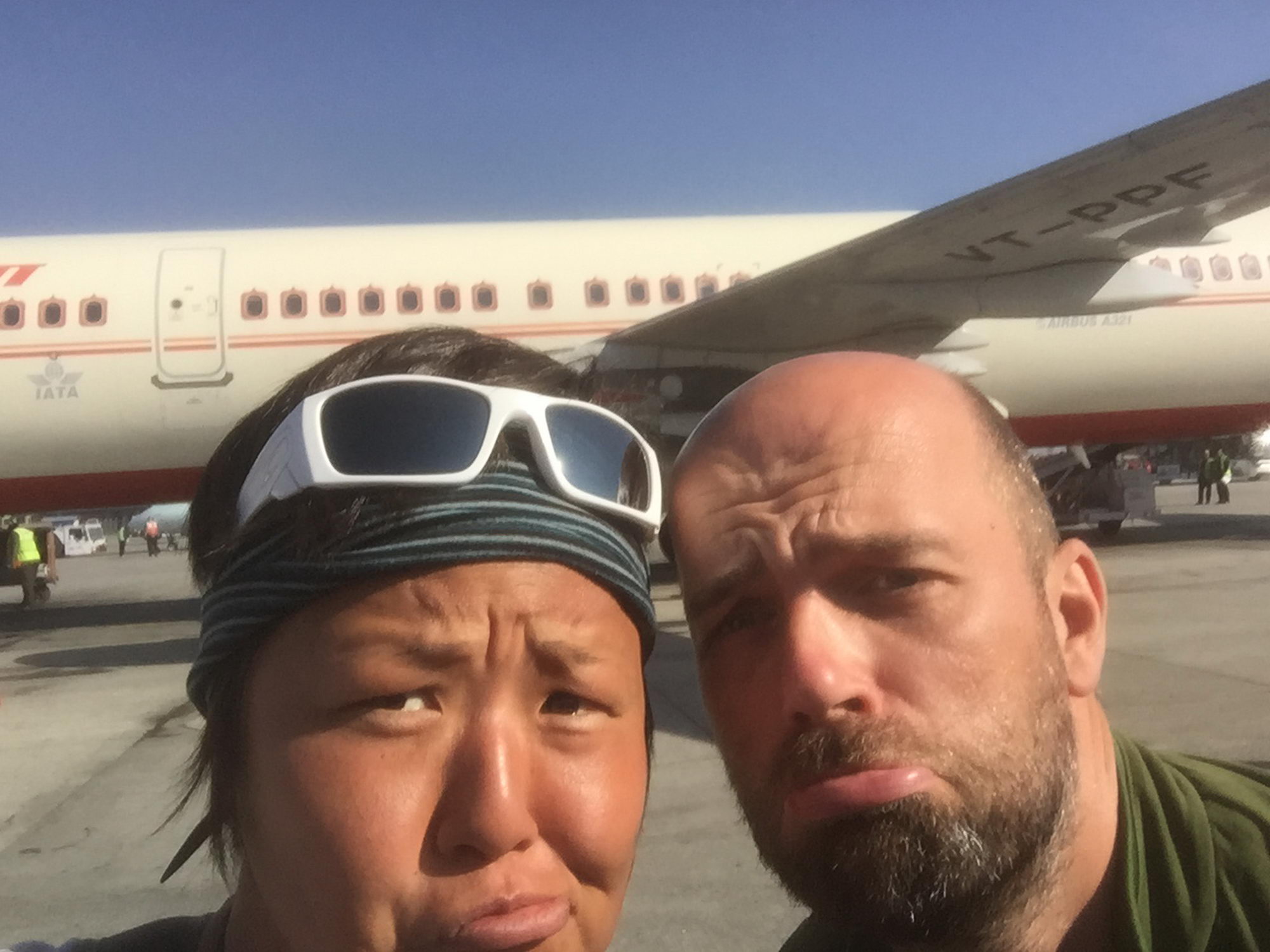 We landden in Delhi met vertraging, want we moesten al inchecken. Met enige overtuigingskracht wisten we ons helemaal naar voor te praten om door de transit security te geraken. Aangezien we naar Parijs met dezelfde luchtvaartmaatschappij vlogen bleef het vliegtuig sowieso wachten op de aansluiting van Kathmandu, dus was het niet nodig om ons te haasten. Maar je weet nooit natuurlijk.